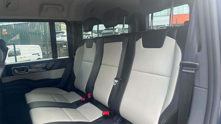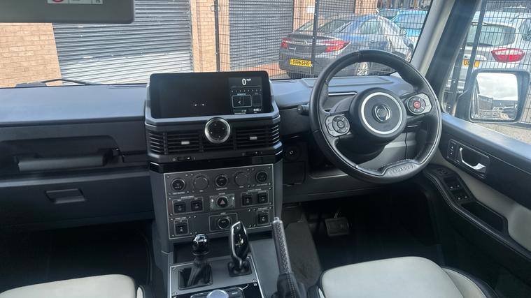 Just arrived in stock Ex Ineos Management vehicle in great condition with remainder of 5 years warranty. Finished in Britannia Blue with Black Light Grey Two tone Recaro Leather interior with heated seats 17 inch Grey twin spoke alloys Fixed side steps Rear access ladder Safari windows Privacy Glass Fixed towbar and electrics Air Con Apple car play.