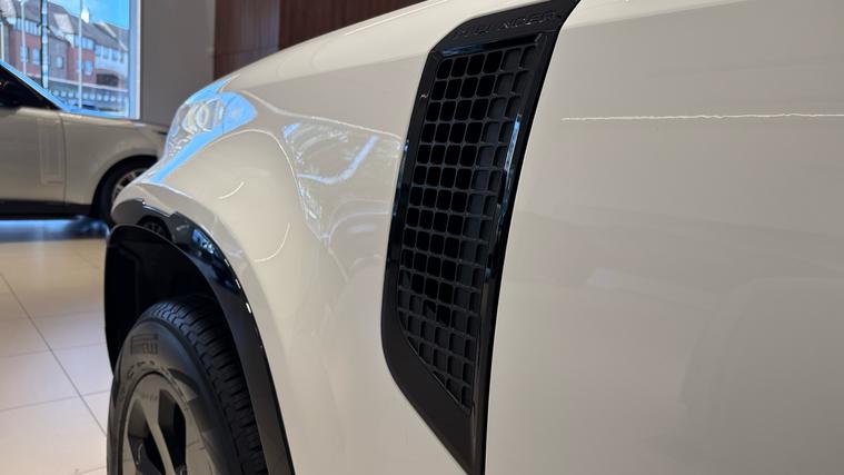 A brilliant Defender 110 equipped with the silky smooth hybrid powertrain, and presented in a great specification. Our Defender X-Dynamic SE is finished in Fuji White matched with the Extended Black Exterior Pack and 20-inch Style 6011 wheels in Gloss Black, over Ebony Resist interior, and comes equipped with some brilliant features and optional extras, including, 12-way Heated front seats with Memory function, Two-zone Climate Control, Meridian Sound System, Privacy Glass, Sliding Panoramic Roof, Premium LED Headlights, Keyless Entry, Adaptive Cruise Control, Lane Keep Assist, Blind Spot Assist, 360-degree Parking Aids, 3D Surround Camera, Apple CarPlay and Android Auto, DAB Radio, Secure Tracker, and more. Call today for more information.