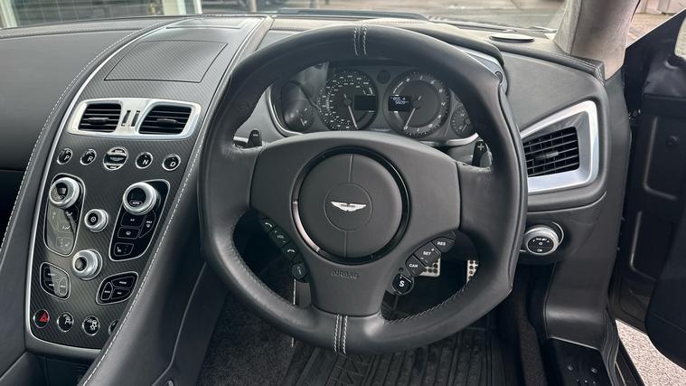 1 Owner Supplied and Serviced by us at Aston Martin Brentwood from new and just over 5600 miles. Stunning Carbon Fibre options throughout. Rare opportunity to purchase this 1 owner from new Aston Martin Vanquish with just 5608 miles covered from new. Finished in stunning Tungsten Silver with an Obsidian Black Leather Trim and Carbon Fibre throughout the exterior and interior. Over 13K of Optional Extras including Carbon Fibre Roof, Carbon Fibre Mirror Caps, Carbon Fibre Fascia Trim, One 77 style Leather Steering Wheel, Contrast Stitch and Welt along with some amazing Standard Features including Bang and Olufsen Audio System and Carbon Ceramic Brakes. Supplied and Serviced by us here at Aston Martin Brentwood from new, this car really is a one off with such incredible low mileage. Great Part Exchange and Finance Offers Available.