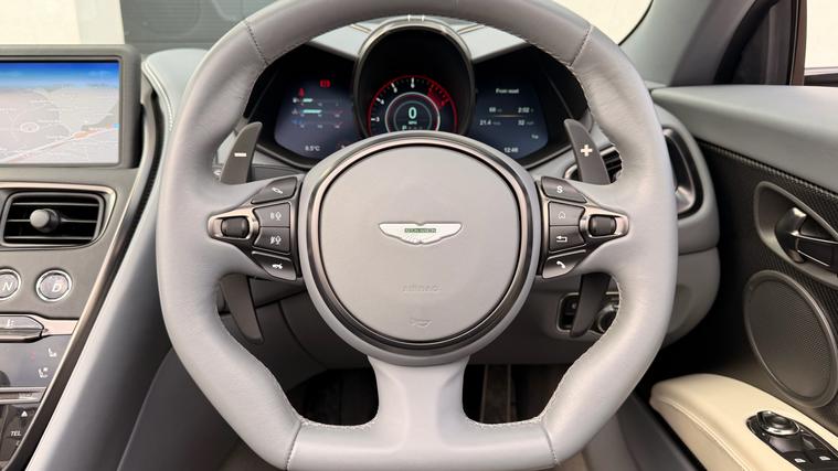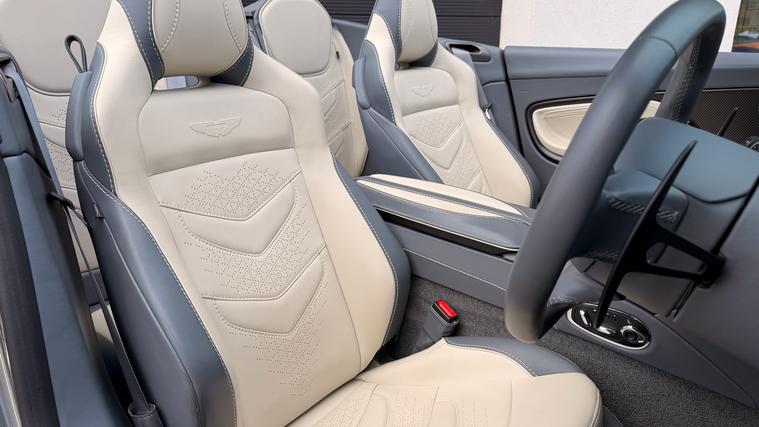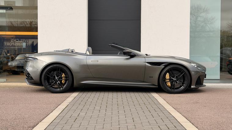 Amazing opportunity to own a lovely example DBS Volante, speak to Nick or Ollie for further information. Aston Martin Hatfield are pleased to offer this Q Spec DBS Superleggera Volante finsihed off in Scintilla Silver with Wolf Grey and Ivory Duoton Leather contrast with a Moon Shadow Rokona Headliner. Alongside the standard specification options the vehicle also features the following factory fitted options: 21 Lightweight Twin Spoke Forged Gloss Black Alloys, Bronze Brake Callipers, Ventilated Seats, Contrast Stitch and Welt, Leather Colour Palette, Black Aston Martin Wing Badging, Q Special Paint, Gloss Black Mirror Caps, Graphite Seatbelts, Carbon Seatbacks, Smoked Tail lights, Carbon Trim Inlay, Gloss Black Window Surround.