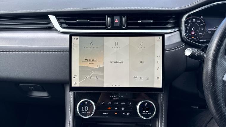 Great looking Plug in Hybrid F Pace, offered in a desirable colourway. Finished in Eiger Grey Metallic with Ebony Hide Seats, Features Include 19 inch Diamond Turned Alloy Wheels, Adaptive Cruise Control, Apple CarPlay, Blind Spot Assist, Configurable Dynamics, Heated Front Seats, Heated Steering Wheel, Keyless Entry, Meridian Sound System, Rear Camera. Experience the unparalleled synergy of power and luxury with the Jaguar F-PACE 2.0 P400e R-Dynamic SE. Cloaked in the sophisticated Eiger Grey Metallic, this all-wheel-drive masterpiece combines dynamic performance with refined elegance. Its electric-enhanced powertrain offers thrilling acceleration while maintaining efficiency and poise. Every detail, from its sculpted contours to its opulent interior, is crafted for those who demand excellence. With intuitive technology seamlessly integrated, you're empowered to command the road with confidence. Elevate your driving experience to extraordinary heights. Discover the F-PACEwhere performance meets artistry. Embrace the journey like never before.