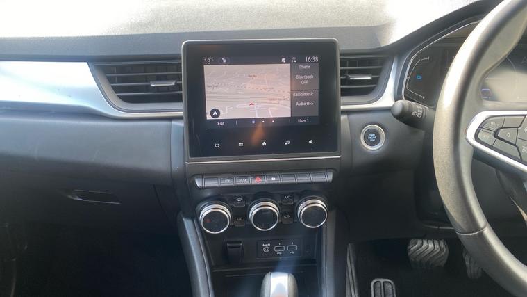 Specifications: Rear Parking Sensors, Auto Climate Control. The Futuristic Renault Captur 1.6 E-TECH Hybrid 145 Iconic Edition. Perfectly blending innovation and style, this dynamic compact SUV offers unmatched comfort with its automatic air conditioning and auto climate control. Glide effortlessly with automatic lights and wipers, while enjoying seamless media connectivity through Bluetooth and AUX In. Navigate with ease using the built-in Sat Nav, all set to a soundtrack delivered by DAB Radio. Safety and convenience are at the heart of this model with cruise control, rear parking sensors, and traction control.