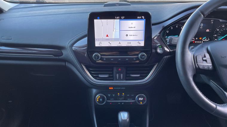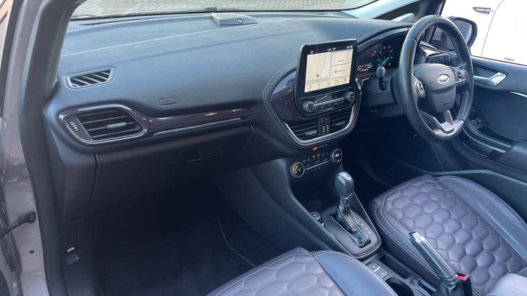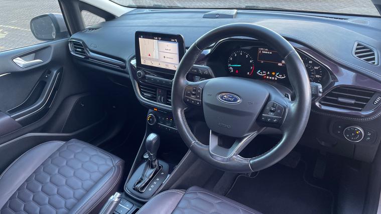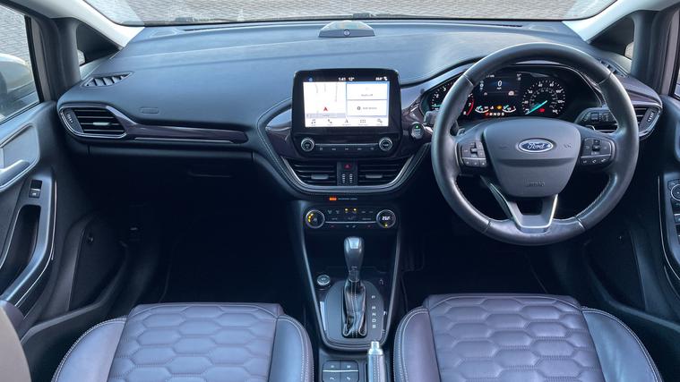 A stunning low mileage automatic Fiesta Vignale finished in Milano Grigio . Never lose your way again with the inbuilt Sat Nav, plus this Fiesta is fitted with a Sliding Panoramic Sunroof, Heated Seats, Heated Steering Wheel, Park Assist including Front and Rear Parking Sensors with Rear Camera, Automatic Headlights, Rain Sensing Wipers, Cruise Control, Lane Keeping Aid, Ford SYNC3 Bluetooth, One-Touch Electric Front Windows, a Heated Windscreen, Air Conditioning and a DAB Radio with USB in. Qualifies for Warranty4Life*.