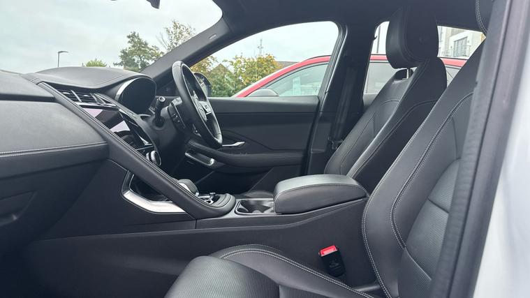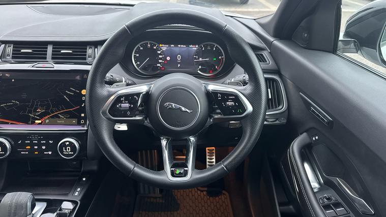Great looking and sporty E Pace offered in excellent condition throughout and with fixed side steps. Our E Pace is finished in Fuji White with Ebony Hide Seats. Features include 11.4 touchscreen with central ICP, 12.3 full digital instrument panel, ABS, Adaptive cruise control, All surface progress control (ASPC), Android Auto, Apple car play, Auto high beam assist, Automatic headlights, Blind spot assist, Bluetooth connectivity including audio streaming, Configurable dynamics, DAB digital audio broadcast, Driver condition monitor, DSC - Dynamic Stability Control, Dynamic volume control, Electric front/rear windows with one touch/auto up/down, Electric heated/power fold memory door mirrors with approach lights and auto dimming driver side, Electric power assisted steering, Emergency brake assist, Enhanced ambient lighting, Front and rear parking aid, Heated windscreen, Jaguar drive control with adaptive surface response, Jaguar script and leaper, Rain sensor windscreen wipers, Rear collision monitor, Rear traffic monitor, Remote central locking, Satin black grained front outer grille, Satin chrome gearshift paddles, Sunvisors with illuminated vanity mirrors, Torque vectoring brake, Traffic sign recognition with adaptive speed limiter, Trip computer, Twin exhaust tailpipe, Twin front cupholders, Two zone climate control, Tyre pressure monitoring system, Variable front intermittent wipers, Voice control system, Fixed Side Steps.