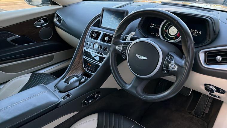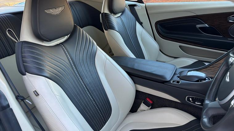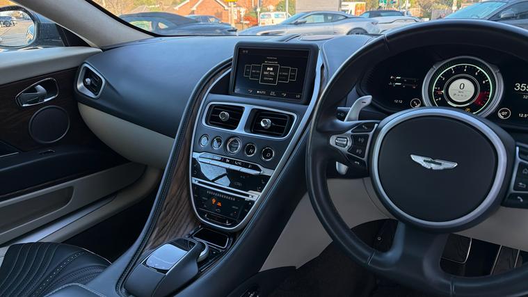 Rare Sea Storm exterior paint with a stunning Ivory and Phantom Grey interior. AMR Engine Power Upgrade, 24K Of Optional Extras and Full Aston Martin Service History . Beautiful Aston Martin DB11 V12 finished in the ultra rare Sea Storm with an Ivory and Phantom Grey Interior Trim. Fitted with the AMR Engine Power Upgrade and over 24K of Optional Extras including Exterior Black Pack, Interior Technology Pack, Nexus Quilting Detailing, Ventilated Seating, Brogue Detailing, Dark Ash Veneer Trim Inlay, Aston Martin Wings Emboridery and Body Coloured Door Handles. Full Aston Martin Service History and 12 Months Aston Martin Premium Warranty. Great Part Exchange and Finance Offers available .