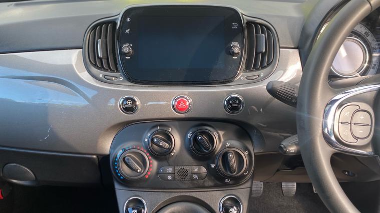 Such a fun/comfortable car which brings style to the roads you drive. Be the centre of attention. Book your Test Drive Now!. The Fiat 500 1.0 Mild Hybrid 3door combines iconic Italian style with modern technology and practical features. It offers a 7 HD touchscreen infotainment system with DAB radio, Bluetooth, USB, and full Apple CarPlay and Android Auto support, paired with a 7 digital instrument cluster showing driving information. Comfort is enhanced by automatic climate control, adjustable steering wheel, and cloth upholstery, while convenience features include cruise control, speed limiter, remote central locking, rear parking sensors, and an e-call emergency system. The cabin benefits from a fixed glass roof with integrated sunblind, and exterior touches include heated power mirrors, LED daytime running lights, and stylish 15 alloy wheelsdelivering a fun, connected, and user-friendly city car experience.