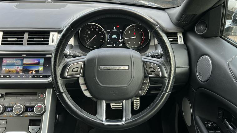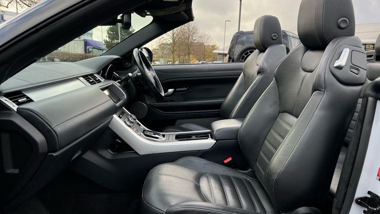 Experience roofless driving in Range Rover comfort with this stunning Evoque Convertible, featuring a great list of features and optional extras, and presented in a brilliant specificaiton. Our Range Rover Evoque Convertible HSE Dynamic is finished in Yulong White matched with the Black Exterior Pack and 20-inch Style 508 wheels in Satin Black, over Ebony Windsor leather interior, and comes equipped with some brilliant features and optional extras, including, 14-way Heated and Cooled front seats with Massage and Memory function, Two-zone Climate Control, Meridian Sound System, Xenon Headlights with LED Signature DRL, Keyless Entry, Cruise Control and Speed Limiter, Front and Rear Parking Aids, Rear Camera, DAB Radio, Bluetooth Connectivity, and more. Call today for more information.