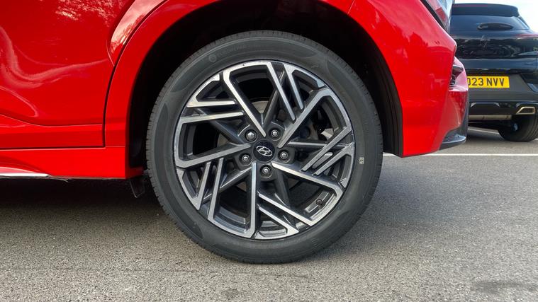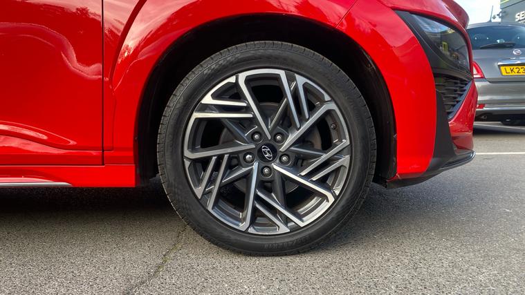 Sporty, well-equipped, and tech-packed, this Kona N Line offers standout style with premium features like a digital cockpit, wireless charging, and smart safety throughout. The 2021 Hyundai Kona NLine excels in delivering a sophisticated and tech-rich cabin, featuring a 10.25inch touchscreen with AppleCarPlay/AndroidAuto, a crisp digital instrument display, wireless phone charging, dual-zone climate control, and ambient lighting. Nspecific touches like red-stitched upholstery, Nbranded seats and gear lever, metal pedals, auto-dimming mirror, automatic wipers, keyless entry, and smart safety systems (including lane following assist and forward collision avoidance) elevate both comfort and connectivity to an impressive level.
