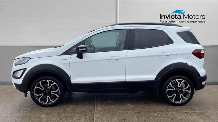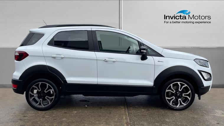 A stylish EcoSport Active finished in Frozen White. Never lose your way again with the inbuilt Sat Nav, plus our EcoSport comes with Rear Parking Sensors with Colour Rear Camera, Cruise Control, Automatic Headlights, Rain Sensing Wipers, One-Touch Electric Windows, Ford SYNC Bluetooth, Air Conditioning, a Heated Windscreen and a DAB Radio with USB in. Qualifies for Warranty4Life*.