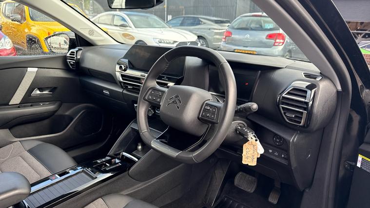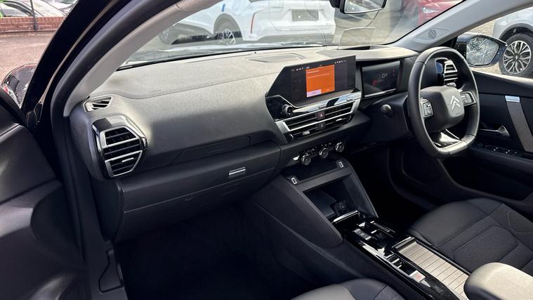 Features include Lane Assist, LED Lights wDusk+Rain Sensors, Cruise Control+Speed Limiter, Powered Mirrors, Climate Control and even a Head Up Display. Modern, stylish, and effortlessly practical, this 2024 Citron C4 X Plus combines striking coupe-inspired design with the comfort and convenience of a versatile hatchback. Finished in sophisticated Perla Nera Black Metallic, it stands out with sleek lines, bold details, and a confident road presence. Powered by the 130ps petrol engine paired with a smooth automatic transmission, it delivers an enjoyable, efficient drive, perfect for both city commuting and longer journeys. Inside, the Plus trim offers a premium experience with advanced technology and comfort features, including a touchscreen infotainment system with satellite navigation, Apple CarPlay/Android Auto, digital driver display, climate control, and supportive seating. With a spacious cabin and clever storage solutions, the C4 X Plus balances practicality with contemporary style. A modern, stylish, and well-equipped hatchback ready for any journey message today to arrange a viewing.