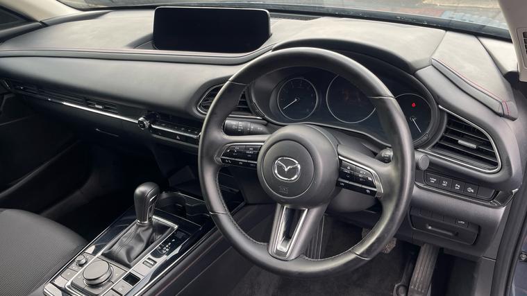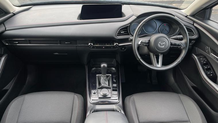 Specification of this our Mazda CX-30 includes Heated Front Seats, Wireless Charging, Folding Mirrors, Mazda Navigation, Reverse Camera and even Apple CarPlay/Android Auto. Experience the Mazda CX-30 2.5 e-Skyactiv G MHEV Homura, crafted for those who crave more than just a drive. Glide effortlessly with blind spot monitoring and rear cross traffic alert. Navigate confidently with front and rear parking sensors, a reversing camera, and integrated navigation. Stay connected with Alexa and Bluetooth integrated services. With intelligent speed assist and adaptive cruise control, every journey is seamless. Enjoy custom comfort with heated front seats, and a vibrant 7-inch TFT display guiding your way. Elevate every adventure with the CX-30, where cutting-edge innovation meets timeless style. Mazda feel alive.