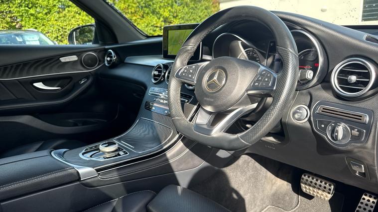 Experience the drive of our ultimate luxury SUV. The Mercedes GLC 220D 4Matic AMG Line Auto is unparalleled and looks fantastic in Brilliant Blue Metallic. Call now to arrange a test drive!. Introducing our Mercedes-Benz GLC 220d 4Matic AMG Line Auto. This luxury SUV is captivating, finished in the lovely Brilliant Blue Metallic. Our 2018 Model comes with a 7in Colour Display Screen. Drive effortlessly with Navigation, Dynamic Select and Attention Assist. Parking has never been easier, thanks to the Rear View Camera and Front and Rear Sensors. Experience the true convenience of a Power Tailgate. Keep updated and entertained with DAB Radio. Enjoy maximum visibility thanks to Auto Lights and Wipers, while Privacy Glass keeps all your belongings out of sight and out of mind! Equipped with the Interior Light Package, this GLC provides a fantastic experience. Revel in comfort with Heated Seats, AMG Sports Seats and Auto Climate Control. This Mercedes-Benz GLC 220d is stunning - don't miss out on the chance to own it today!.