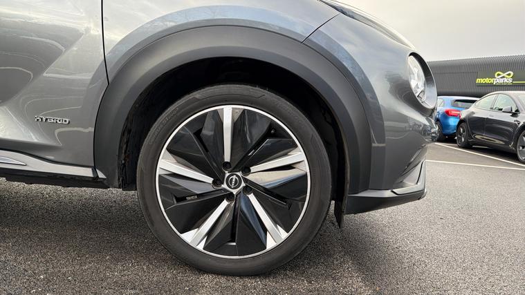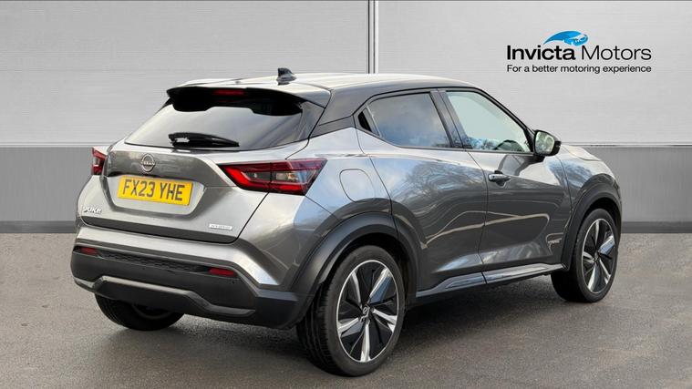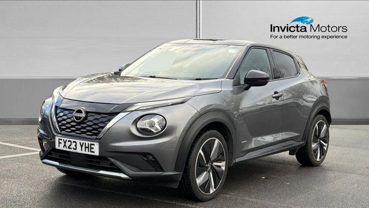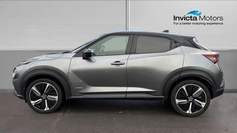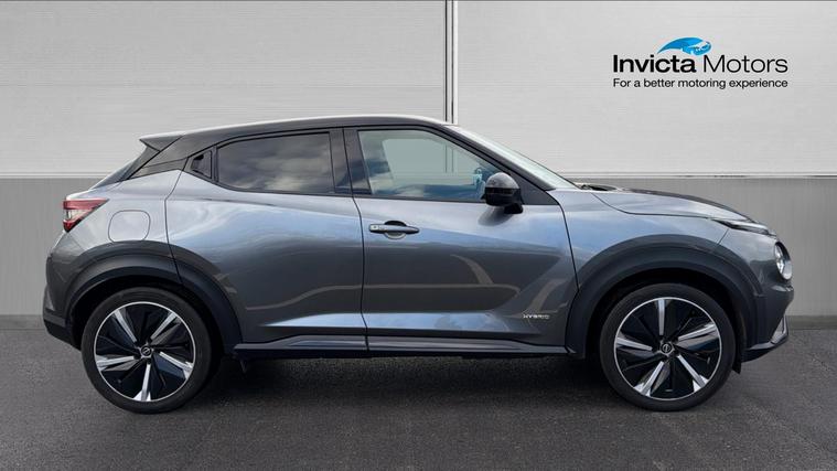 Features Include Apple CarPlay And Android Auto, Heated Front Seats, BOSE Sound System, Climate Control and Hill Start Assist. Bold design meets intelligent hybrid technology in this 2023 Nissan Juke Tekna+ 1.6 Hybrid Auto, finished in striking Gun Metallic Grey. With its eye-catching styling, premium interior, and smooth electrified performance, this range-topping Juke is perfect for drivers who want efficiency without sacrificing comfort or flair. The advanced 1.6-litre hybrid powertrain delivers seamless, automatic performance with impressive fuel efficiency, making it ideal for both urban driving and longer journeys. Quiet and refined around town, yet confident on the open road, the Juke Hybrid offers a responsive and enjoyable driving experience. Step inside and you're welcomed by the Tekna+ trim, which adds a truly premium feel. Highlights include heated leather seats, a high-resolution touchscreen infotainment system with satellite navigation, Apple CarPlay and Android Auto, and a fully digital driver display. Cutting-edge safety and driver assistance systems provide added confidence behind the wheel. On the outside, the Gun Metallic Grey paintwork perfectly complements the Juke's sharp lines, distinctive LED lighting, and stylish alloy wheels, ensuring it stands out wherever it goes. Compact on the outside yet surprisingly spacious within, it's a superb choice for modern lifestyles.