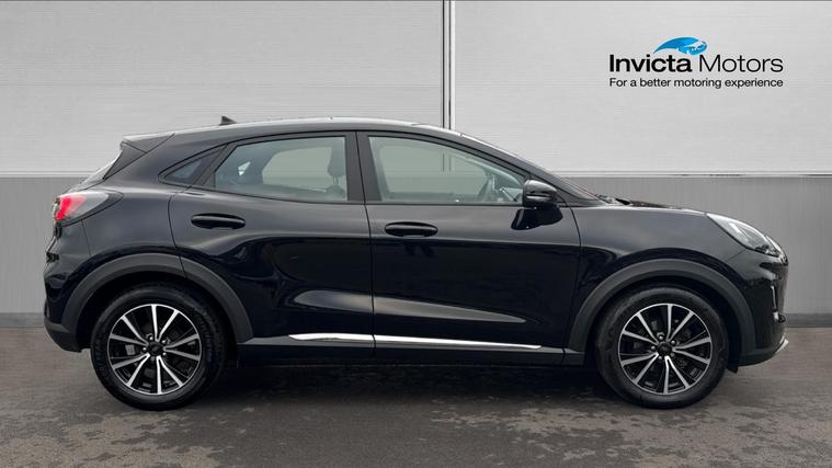 Features include LED Lights wDusk+Rain Sensors, Cruise Control+Speed Limiter, Drive Modes, Hill Hold Assist, Lane Assist and even Keyless Go. The Ford Puma is the smallest car now produces by Ford and takes the place of the Ford Fiesta for the best selling car in the UK. This particular model is the Titanium Hybrid, which uses a more potent version of the 1.0 EcoBoost Petrol Engine, rated at 125ps. Inside the cabin the Ford Sport Seats are trimmed in 'Cloth - Ebony' upholstery which includes Rear Isofix Points. Through the 8in 'SYNC 3' display access is featured to DAB radio bands with Bluetooth and USB media devices, Apple Carplay and Android Auto as well as Navigation.