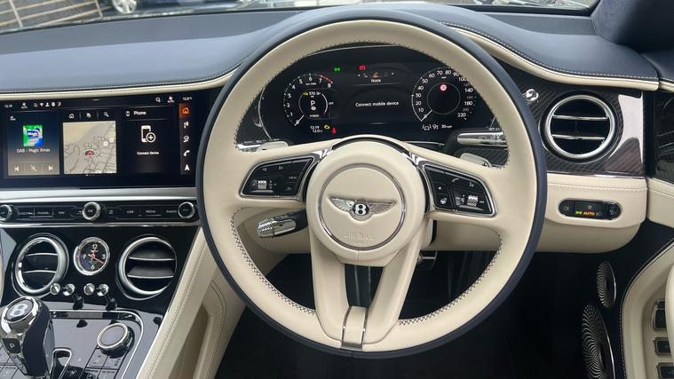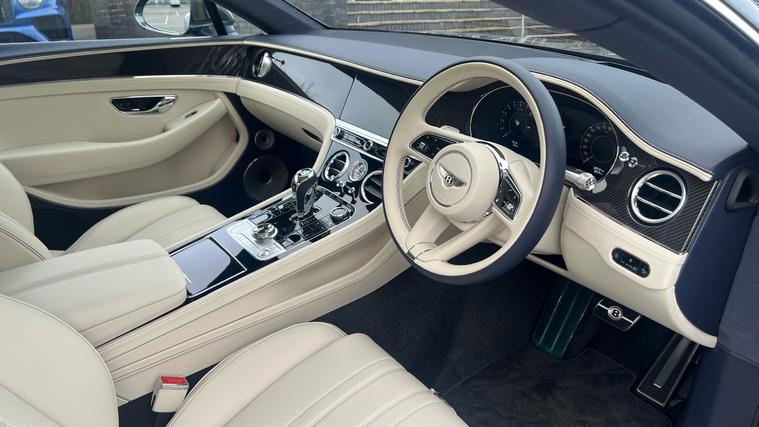 A extremely rare oppourtunity to purchase a 2026MY Continental GT finished in Thunder Grey. Stunning continental GT Coupe in Thunder with an interior of linen and imperial blue and high gloss carbon fibre veneer. Fantastic specification including Touring specification, front seat comfort specification, Bentley rotating display, Bang + Olufsen stereo, mood lighting, heated windshield + Bentley welcome lamps.