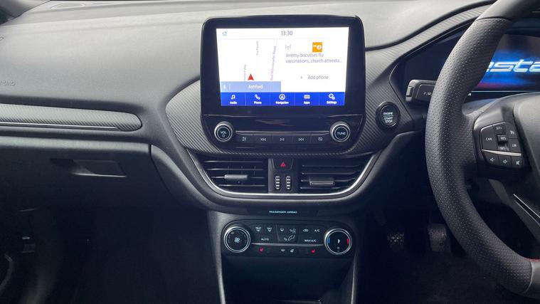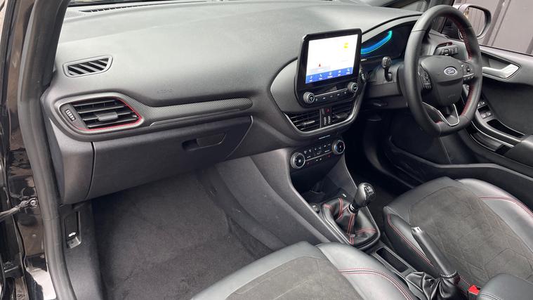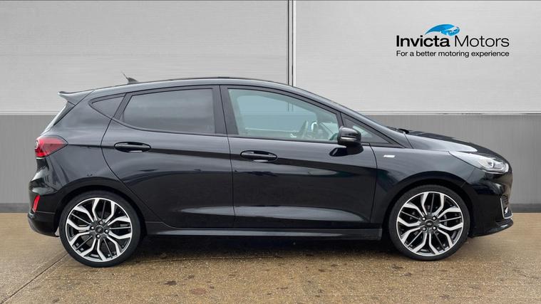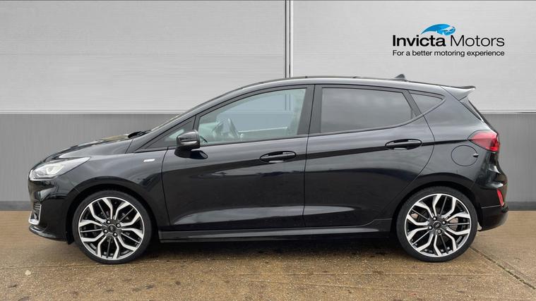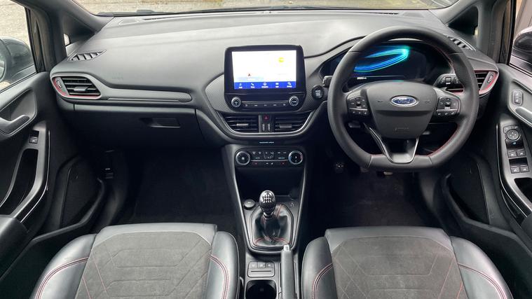 A stunning Fiesta ST-Line Vignale finished in the metallic Agate Black. Never lose your way again with the inbuilt Sat Nav, plus this Fiesta is fitted with Keyless Entry, Heated Front Seats, Automatic Headlights, Rain Sensing Wipers, Cruise Control, Rear Parking Sensors with Rear Camera, Lane Keeping Aid, Ford SYNC3 Bluetooth, One-Touch Electric Windows, a Heated Windscreen, Air Conditioning and a DAB Radio with USB in. Qualifies for Warranty4Life*.