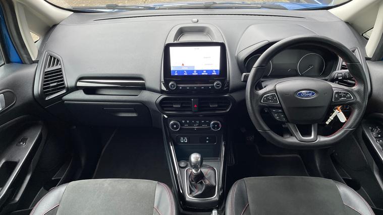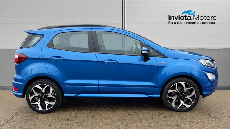 A stunning EcoSport ST-Line finished in the metallic Desert Island Blue. Never lose your way again with the inbuilt Sat Nav, plus our EcoSport comes with Rear Parking Sensors with Colour Rear Camera, Cruise Control, Automatic Headlights, Rain Sensing Wipers, One-Touch Electric Windows, Ford SYNC Bluetooth, Air Conditioning, a Heated Windscreen and a DAB Radio with USB and AUX in. Qualifies for Warranty4Life*.