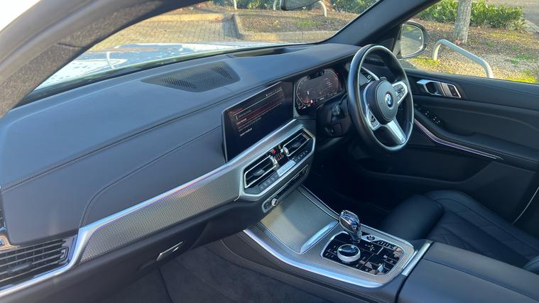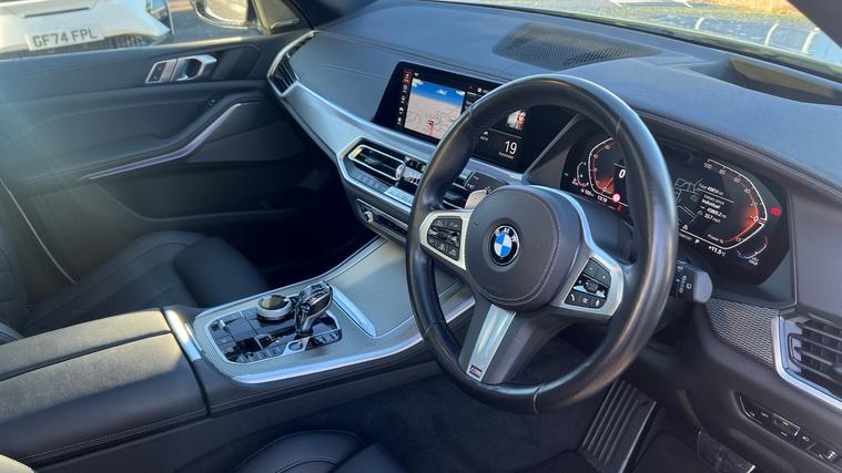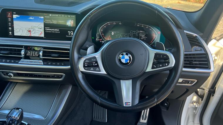 BMW X5 30d M Sport finished in Mineral White with a Black Interior, Big Specification and only one owner from new with a full BMW history, . Mineral White, Air Suspension, Third Row 7 seats, Sky Lounge. Pro Plus pack, Vis pack, Tech Plus pack, 22 inch Bi Colour Alloy Wheels.