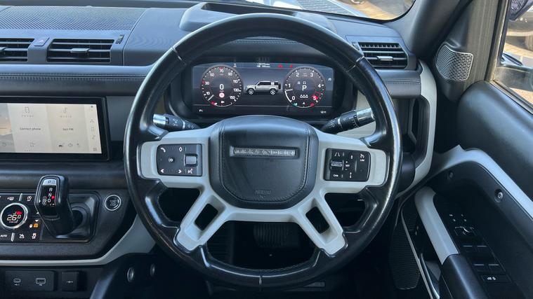 This fantastic Defender 110 SE is equipped with a great list of fantastic features and optional extras, including the Off-road Pack, allowing for increased capabilities when the going gets tough. Our Defender 110 SE is finished in Fuji White matched with 20-inch Style 5094 wheels in Gloss Black, over Ebony Windsor leather interior, and comes equipped with some brilliant features and optional extras, including, 14-way Heated and Cooled front seats with Memory function, Two-zone Climate Control, Cabin Air Ionisation, Meridian Sound System, Privacy Glass, Solar Attenuating Windscreen, Matrix LED Headlights with Signature DRL, Keyless Entry, Adaptive Cruise Control, Lane Keep Assist, Blind Spot Assist, Front and Rear Parking Aids, 3D Surround Camera, Head-up Display, Apple CarPlay and Android Auto, DAB Radio, Electrically Deployable Tow Bar, Driver Assist Pack, Off-road Pack, and much more. Call today for more information.