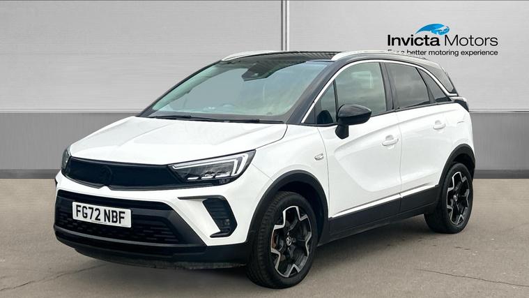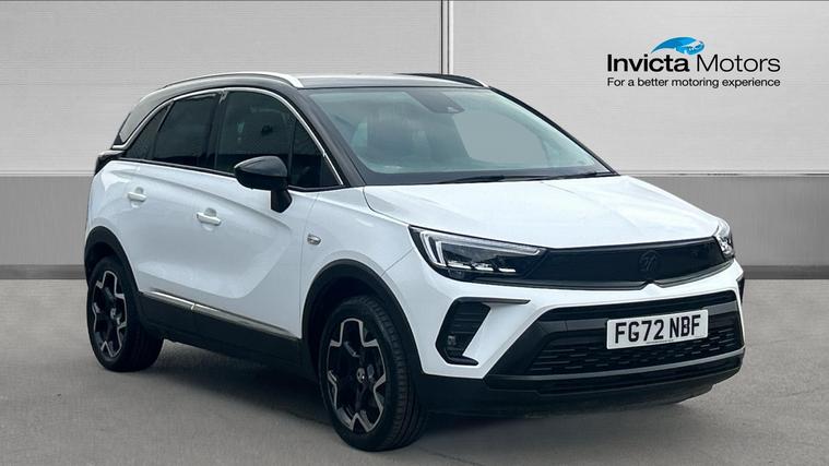 A top-spec Crossland with excellent comfort, technology and practicality. A great all-round compact SUV. The 2022 Vauxhall Crossland 1.2 Turbo Ultimate offers a high level of comfort and technology in a compact, practical SUV. The Ultimate trim includes heated front seats, a heated steering wheel, dual-zone climate control, creating a refined driving environment. The touchscreen infotainment system features built-in navigation, Apple CarPlay and Android Auto, while convenience is boosted by keyless entry and start, front and rear parking sensors with a reversing camera, and electric folding mirrors. Finished with LED headlights, stylish alloy wheels and privacy glass, it delivers a premium look with everyday usability.