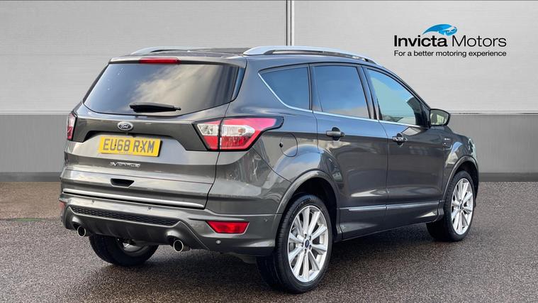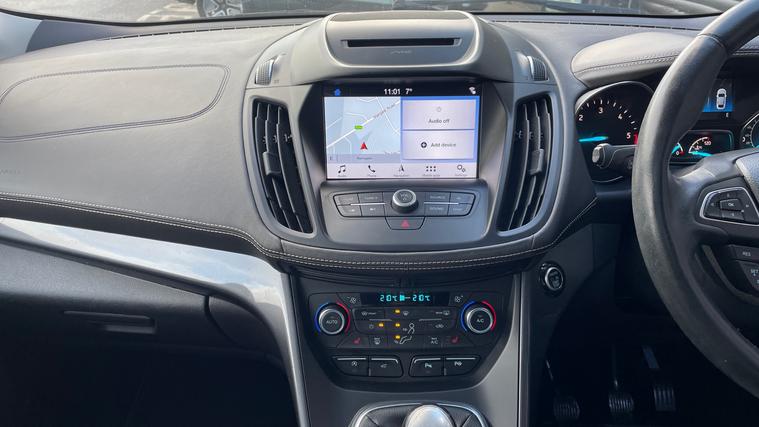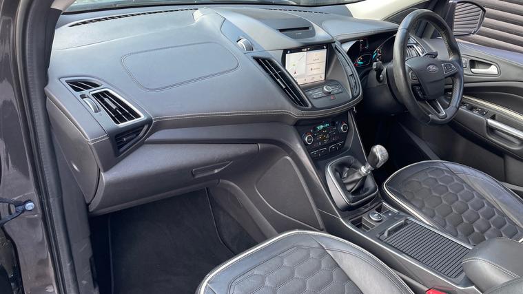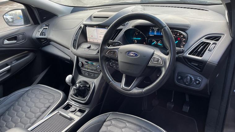A great chance to purchase a Kuga Vignale with panoramic roof and blind spot alert. Never lose your way again with the inbuilt Sat Nav, plus our Kuga comes with Sliding Panoramic Sunroof, Cruise Control, Automatic Xenon Headlights, Power Tailgate, BLIS, Rain Sensing Wipers, Front and Rear Parking Sensors with Colour Rear Camera, Active City Stop, One-Touch Electric Windows, Ford SYNC Bluetooth, Dual Zone Climate Control, and a CD / DAB Radio with USB and AUX in. Qualifies for Warranty4Life*.