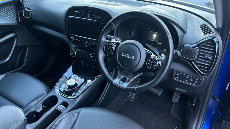 A stunning Kia Soul Maxx finished in the metallic Neptune Blue. Get ready to electrify every journey with the Kia Soul 150kW Maxx 64kWh 5dr Auto. Designed for drivers who crave innovation and comfort, this standout SUV offers a 10.25-inch navigation system, perfectly guiding your adventures. Experience superior sound with Harman Kardon Audio, immersing you in rich, vibrant music. As seasons change, heated seats and a heated steering wheel ensure every ride is as cozy as it is thrilling. Discover a blend of cutting-edge technology and dynamic performance with the Kia Soul. It's not just a drive; it's a revolution in motion. Step inside and feel the future.