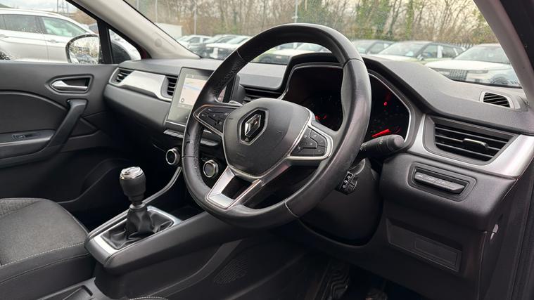 Features Include Cruise Control And Speed Limiter, TouchScreen Infotainment System, Air Conditioning And Hill Start Assist. Stylish, efficient, and practical, this 2022 Renault Captur Evolution is the perfect compact SUV for everyday driving. Finished in eye-catching Flame Red, it offers modern design, low running costs, and a comfortable, well-equipped interior. Powered by Renault's reliable 1.0 TCe petrol engine producing 90bhp, the Captur delivers smooth performance with excellent fuel efficiency, making it ideal for both city driving and longer journeys. Its light steering and refined ride ensure an easy and confident driving experience. Inside, the cabin is modern and user-friendly, featuring a touchscreen infotainment system, smartphone connectivity, digital driver display, and cruise control. The raised driving position provides great visibility, while the well-designed interior offers plenty of space for passengers and luggage alike. On the outside, the Captur's bold SUV styling is enhanced by its Flame Red paintwork, distinctive front grille, and sleek body lines, giving it a confident and contemporary road presence.