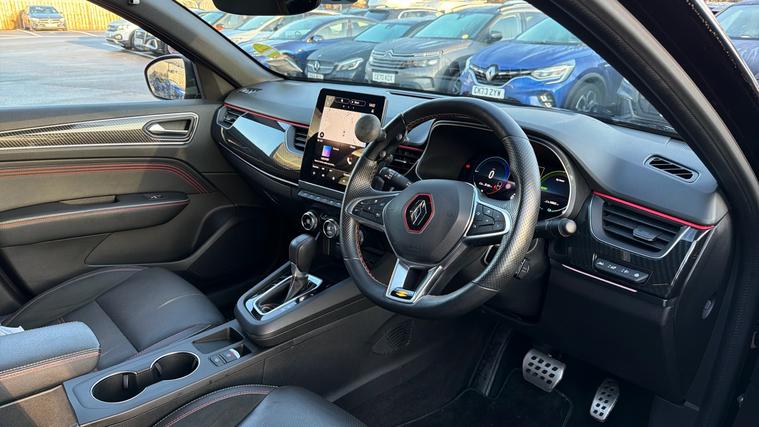 Features Include Cruise Control, Lane Assist And Parking Sensors, Digital Drivers Display, Air Conditioning And Hill Start Assist. Stylish, efficient, and packed with modern technology, this 2022 Renault Arkana E-Tech Hybrid R.S. Line offers the perfect blend of sporty coupe-SUV design and advanced hybrid efficiency. Finished in striking Metallic Black, the Arkana stands out with its sleek roofline, bold stance, and premium R.S. Line detailing. Powered by Renault's innovative 1.6 E-Tech Hybrid system producing 145hp, this Arkana delivers smooth, responsive performance with impressive fuel economy and low emissions. The automatic transmission provides a refined, effortless drive, making it ideal for both urban commuting and longer motorway journeys. Inside, the R.S. Line interior offers a premium, driver-focused environment. You'll find sports-style seating, a digital driver display, and a large touchscreen infotainment system with Apple CarPlay and Android Auto, ensuring you stay connected and comfortable on every journey. High-quality materials and thoughtful design create a cabin that feels both modern and luxurious.