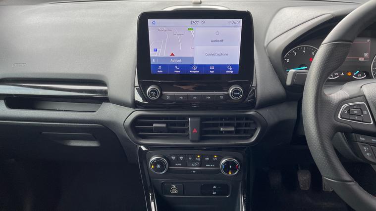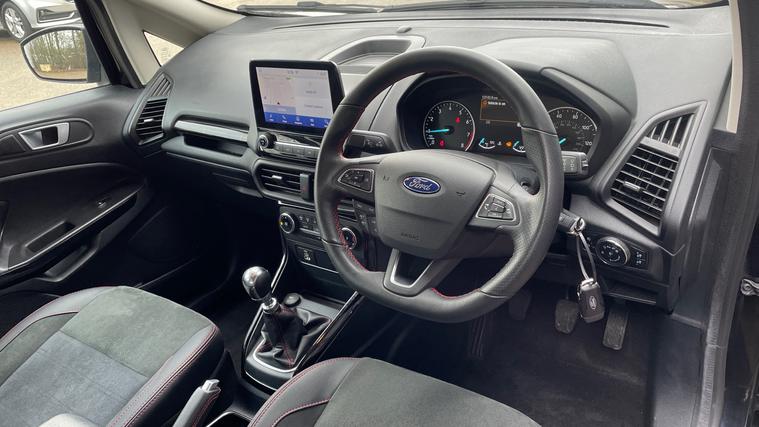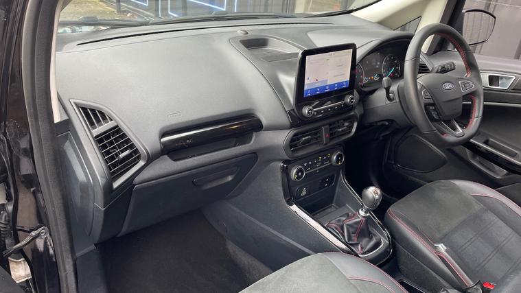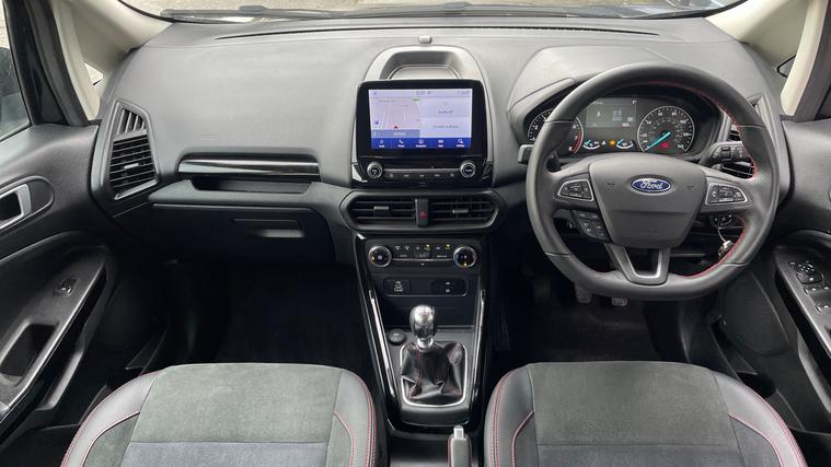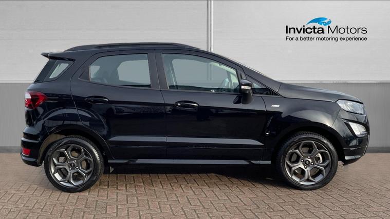 A sporty low mileage EcoSport ST-Line finished in the metallic Agate Black. Never lose your way again with the inbuilt Sat Nav, plus our EcoSport comes with Rear Parking Sensors with Colour Rear Camera, Cruise Control, Automatic Headlights, Rain Sensing Wipers, One-Touch Electric Windows, Ford SYNC Bluetooth, Air Conditioning, a Heated Windscreen and a DAB Radio with USB and AUX in. Qualifies for Warranty4Life*.