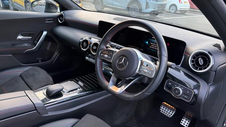 Features Include Dual Digital Display, Apple CarPlay And Android Auto, Climate Control And Ambient Lighting And Hill Start Assist. Refined, sporty, and packed with premium technology, this 2020 Mercedes-Benz A180 AMG Line Executive offers the perfect balance of luxury, performance, and everyday usability. Finished in striking Cosmos Black, it delivers a sleek, athletic presence paired with Mercedes' renowned build quality and comfort. Powered by a smooth and efficient 1.3-litre petrol engine and paired with a responsive automatic transmission, the A180 provides effortless performance whether cruising on the motorway or navigating city streets. The drive is refined, quiet, and confidence-inspiring, making it an ideal premium hatchback for daily use. Inside, the AMG Line Executive interior elevates the experience with a modern, driver-focused cabin. The dual widescreen display creates a high-tech feel, combining a digital driver display with a central infotainment screen featuring satellite navigation, Apple CarPlay and Android Auto. Supportive sports seats, ambient lighting, and high-quality materials ensure every journey feels special. Externally, the AMG Line styling enhances the A-Class's sporty character with distinctive bumpers, alloy wheels, and subtle performance details. The deep Cosmos Black paintwork complements the car's sharp lines and dynamic stance, giving it a premium and confident road presence. Practical as well as stylish, the A180 offers a comfortable 5-door layout, generous boot space, and advanced safety systems, making it perfectly suited to commuting, family use, or longer journeys.