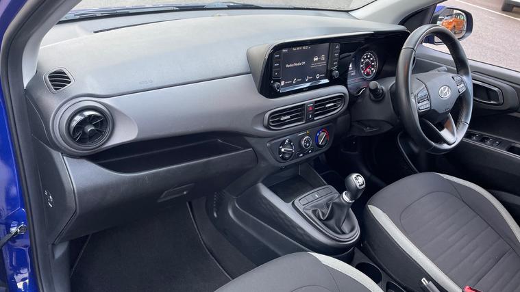 A stylish Hyundai i10 finished in Intense Blue Pearl. Discover the Hyundai i10 1.0 MPi SE Connect 5dr a compact marvel that's perfect for urban adventures. Seamlessly integrate your smartphone with Apple CarPlay and Android Auto to stay connected on the go. Effortlessly navigate tight spots with the Reverse Camera, while Bluetooth keeps your calls hands-free. Enjoy smooth, relaxed journeys with Cruise Control and immerse yourself in crisp sound via the DAB Radio. Climate perfection is yours at the touch of a button with Air Conditioning. Experience style, technology, and comfort in one dynamic package. The Hyundai i10 where innovation meets everyday practicality. Drive your future today.