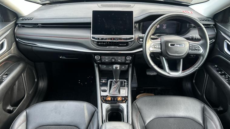 A well-equipped PHEV SUV with solid comfort and smart features. Ideal for drivers wanting modern tech and efficient performance in one package. The 2023 Jeep Compass 1.3 T4 GSE 4xe PHEV Trailhawk combines premium comfort and modern technology with efficient plug-in hybrid capability and rugged SUV styling. Inside, it offers a high-quality cabin with heated front seats, dual-zone climate control, a digital driver display and a large infotainment touchscreen with Apple CarPlay + Android Auto. Practical convenience features include keyless entry + start, front + rear parking sensors with a 360 camera, electric folding heated mirrors, ambient interior lighting and wireless phone charging. On the outside the Trailhawk trim adds distinctive design details, roof rails, LED headlights and privacy glass, giving it a capable yet refined presence. With a versatile five-door layout and thoughtful tech throughout, it's a premium PHEV SUV suited to both everyday use and adventurous drives.