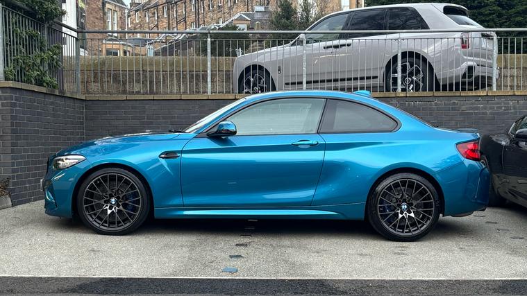 GRANGE EDINBURGH are delighted to offer for sale this gorgeous BMW M2 Competition finished in Long Beach Blue metallic paint and a full Black leather interior. GRANGE EDINBURGH are delighted to offer for sale this gorgeous BMW M2 Competition finished in Long Beach Blue Metallic Paint. The full factory specification includes: Harman Kardon Audio System, Sun Protection Glazing, 19 Inch M Y-Spoke Alloy Wheels, M2 Comfort Park, M2 Plus Pack, Heated Steering wheel, Electric Front Seats with Drivers Memory, Enhanced Bluetooth with Wireless Charging, Comfort Access System, Reversing Assist Camera, Exterior Mirrors - Electric Folding and BMW Icon Adaptive LED Headlights. This car will come with 6 months warranty and roadside assistance from date of collection. For further information and a personalised walkaround video please contact a member of the sales team at GRANGE EDINBURGH.
