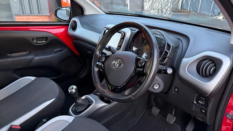 Features Include Air Conditioning, DAB Radio, Bluetooth Connectivity and USB Connectivity, And Low Runnig Costs. Bright, compact, and incredibly economical, this 2018 Toyota Aygo 1.0 VVT-i X-Play in eye-catching Pop Red is the perfect city car. With its distinctive styling, low running costs, and easy-to-drive nature, the Aygo is ideal for new drivers, commuters, or anyone looking for a fun and reliable hatchback. Powered by a 1.0-litre VVT-i petrol engine, the Aygo delivers smooth and efficient performance, making it perfect for urban driving and longer journeys alike. Its lightweight design and compact dimensions ensure excellent manoeuvrability, while remaining cheap to insure and maintain. Inside, the X-Play trim offers a modern and comfortable cabin featuring a touchscreen infotainment system, Bluetooth connectivity, DAB radio, air conditioning, and steering wheel-mounted controls. Despite its compact size, the Aygo provides a surprisingly practical interior with flexible seating and usable boot space for everyday needs. Finished in vibrant Pop Red, this Aygo stands out on the road with its bold front styling, alloy wheels, and youthful charactercombining personality with Toyota's renowned reliability.