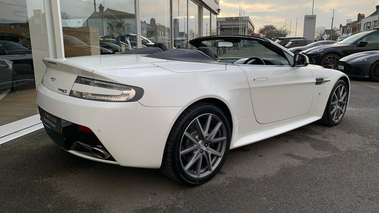 Beautiful Stratus White Vantage S Roadster, 430BHP, sharper steering, suspension and better brakes with the S Model. Stunning Value Aston Martin Vantage S Roadster covered just 24888miles and only 3 Owners from new. Finished in Stratus White with an Obsidian Black Leather Trim and some fantastic Optional Extras including 19inch V Spoke Graphite Diamond Turned Alloy Wheels, Reversing Camera, Aston Martin Premium Audio, Black Brake Calipers, Bright Finish Front Grille, Heated Seats, Memory Seats, Fine Stitching, Front Parking Sensors and Glass Switches.Carbon Fibre Front and Rear Splitter. Navigation, Electric Seats, Full Service History and 12 Months Aston Martin Premium Warranty included. Great Part Exchange and Finance Offers Available.