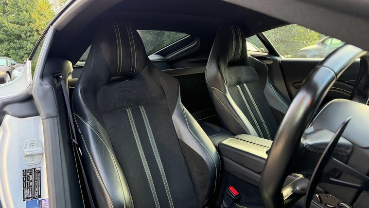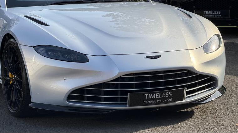 21inch Satin Black Alloys and Gloss Black Upper and Lower Exterior Packs on this 2022 Vantage Coupe in stunning colour combination and spec. Full Aston Martin Service History and 12 Months AM Warranty. Eyecatching Lightning Silver Aston Martin Vantage with contrasting Onyx Black Haircell Leather Trim and some amazing Optional Extras including 21inch Satin Black Alloy Wheels, Sports Plus Seats, Gloss Black Upper and Lower Exterior Packs, Smoked Tail Lights, Contrast Stitch, Privacy Glass, Vaned Front Grille, Ventilated Seats, Yellow Brake Calipers, Aston Martin Premium Audio and Aston Martin Black Script and Wings Badging. Full Aston Martin Service History with remainder of 5 Year Service Pack and 12 Months Aston Martin Premium Warranty.