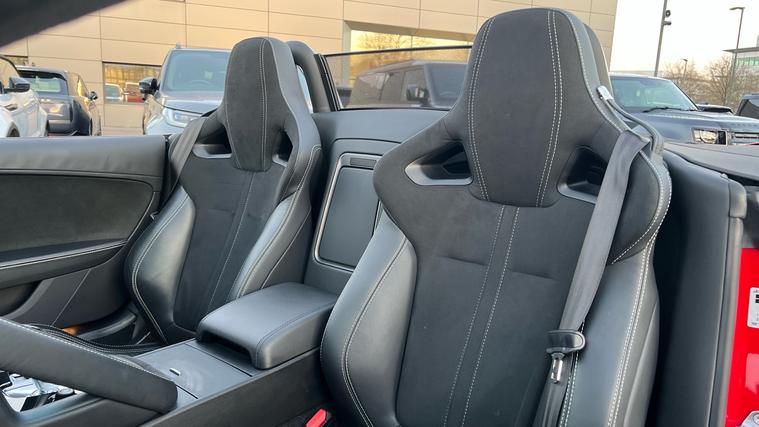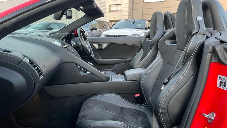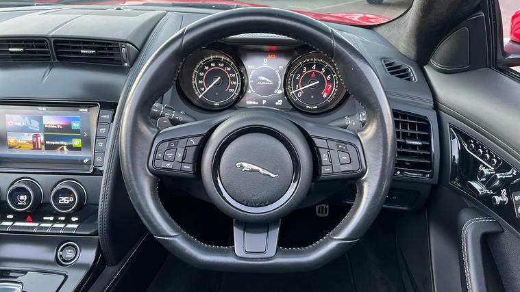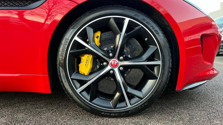 This brilliant two-seat convertible is presented in a stunning specification, with Salsa Red paintwork, and 20-inch Diamond Turned wheels housing rarely seen Carbon Ceramic Brakes. Our Jaguar F-Type S is finished in Salsa Red matched with the Black Exterior Pack and 20-inch Storm Style wheels in Diamond Turned finish, over Jet leather and suedecloth interior, and comes equipped with some brilliant features and optional extras, including, 14-way Heated seats with Driver Memory function, Two-zone Climate Control, Adaptive Xenon Headlights with LED Signature DRL, Keyless Entry, Cruise Control, Blind Spot Monitoring, Front and Rear Parking Aids, Rear Camera, Park Assist, DAB Radio, Bluetooth Connectivity, Carbon Ceramic Brake Pack, and much more. Call today for more information.