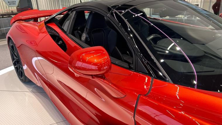 Stunning Exmple, 1 Owner vehcile, great spec that includes some fabulous Carbon Fibre Options, balalnce of Manufacturer warranty until July 2027 and has 2 out of 3 remining services with service plan. Elite exterior paint in Ember Orange, Electrochromic roof, Sports Exhaust, stealth exhaust finishers, body-colour front fenders with louvres colour, sound comfort windscreen, TechLux interior in jet black, power-adjust heated comfort memory seats, electric steering column, black seat belts, porcelain contrast stitching, armrest with McLaren branding, ambient lighting, ignition key in body colour, Carbon Fibre FeaturesSill finishers in satin carbon fibre, carbon fibre seat backs, carbon fibre interior details pack, carbon black Alcantara steering wheel, full carbon fibre steering wheel upper with clasp and paddles, carbon fibre steering wheel paddles, carbon fibre steering wheel clasp, carbon fibre door inserts, Bowers + Wilkins 12-speaker audio system, front and rear parking sensors, rear parking camera, 360-degree park assist, volumetric alarm, vehicle tracking system, Homelink system, vehicle lift, tyre pressure monitoring system, Strike 10-spoke super-lightweight wheels, gloss black wheel finish, carbon ceramic brakes, bronze brake calipers with silver logo, fire extinguisher, warning triangle and first aid kit, lithium-ion battery charger.