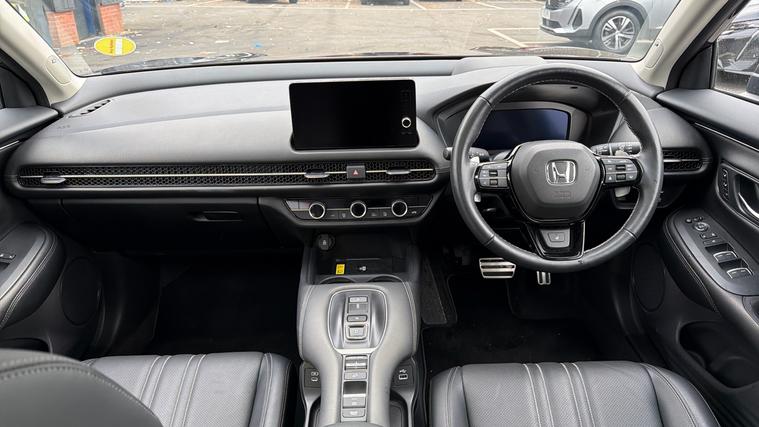 Features Include Digital Drivers Display, TouchScreen Infotainment System With Apple CarPllay And Android Auto, LED Headlights And Hill Start Assist. Discover a perfect balance of sporty design, hybrid efficiency, and premium comfort with this 2024 Honda ZR-V Advance i-MMD, finished in striking Ruse Black. Positioned between the HR-V and CR-V, the ZR-V offers a refined driving experience with the versatility of a modern SUV. Powered by Honda's advanced i-MMD self-charging hybrid system, this ZR-V delivers smooth, responsive performance with excellent fuel efficiency. The CVT automatic transmission ensures seamless acceleration, making every journey relaxed and effortless whether you're navigating city streets or cruising on the motorway. Inside, the Advance trim provides a high-quality, driver-focused cabin featuring premium materials, digital driver display, touchscreen infotainment with Apple CarPlay + Android Auto, climate control, and a suite of intelligent driver assistance systems. The spacious 5-door layout offers generous passenger comfort and a practical boot, ideal for everyday use or longer trips. The sleek Ruse Black exterior enhances the ZR-V's bold, athletic styling, complemented by alloy wheels, LED lighting, and clean, modern lines that give it a confident road presence.
