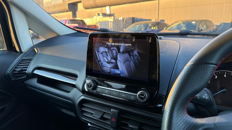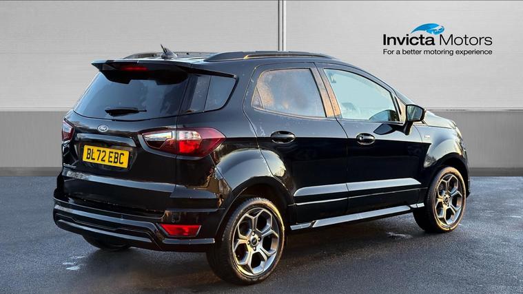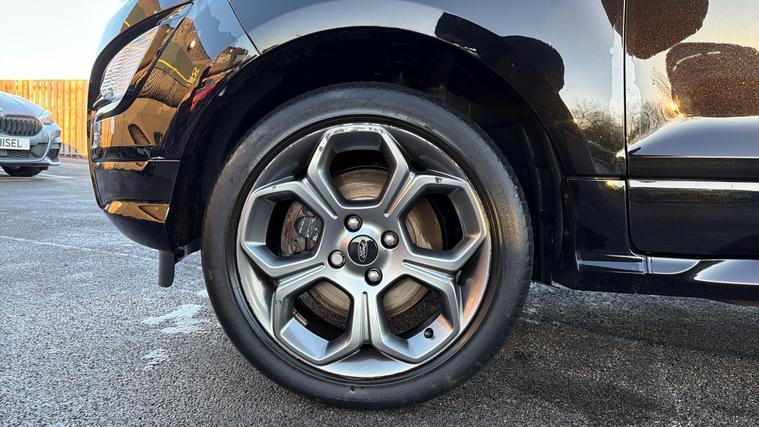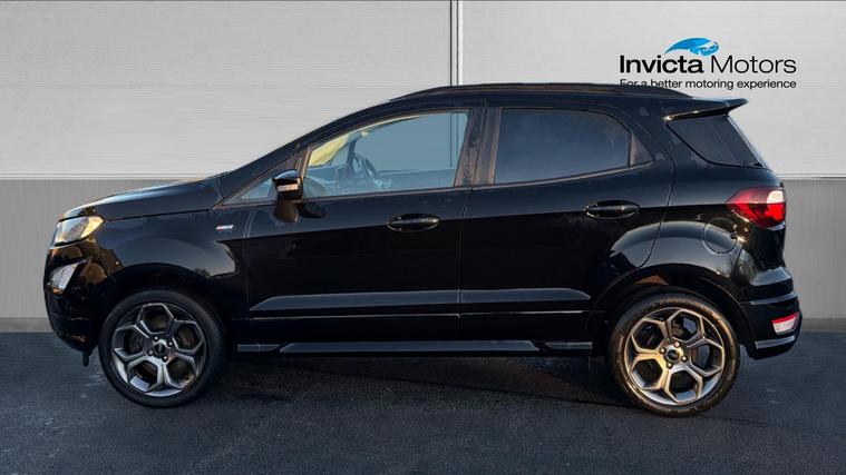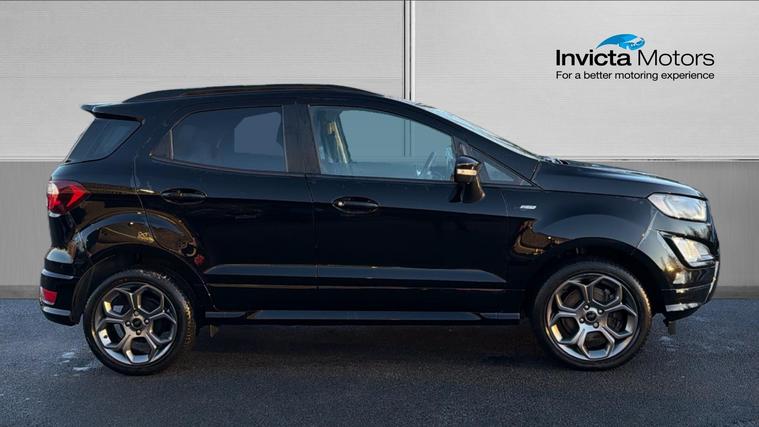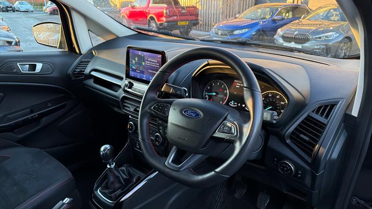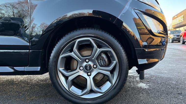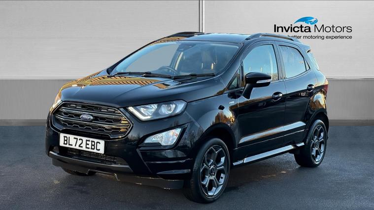 Features Include X Pack Upgrade, Leather Interior, B + O Sound System, Rear Camera And Quickclear Heated Windscreen. Bold, compact, and packed with sporty character, this 2022 Ford EcoSport ST-Line finished in striking Agate Black is the perfect SUV for drivers who want elevated driving position, sharp styling, and everyday practicality. With the desirable ST-Line trim and X Pack, this EcoSport stands out with added comfort, technology, and visual appeal. Powered by a 1.0-litre EcoBoost petrol engine producing 125bhp, it delivers lively performance with impressive fuel efficiency. The raised ride height offers excellent visibility and confidence on the road, while Ford's responsive handling ensures a smooth and engaging drive whether in town or on the motorway. Inside, the ST-Line interior features sporty styling, supportive seats, and a driver-focused layout. The X Pack adds premium touches such as upgraded wheels, enhanced exterior styling, and additional comfort features, while the infotainment system with smartphone connectivity keeps you connected on every journey. The Agate Black paintwork perfectly complements the EcoSport's muscular SUV stance, enhanced by ST-Line body styling, alloy wheels, and distinctive detailing for a confident, athletic road presence.
