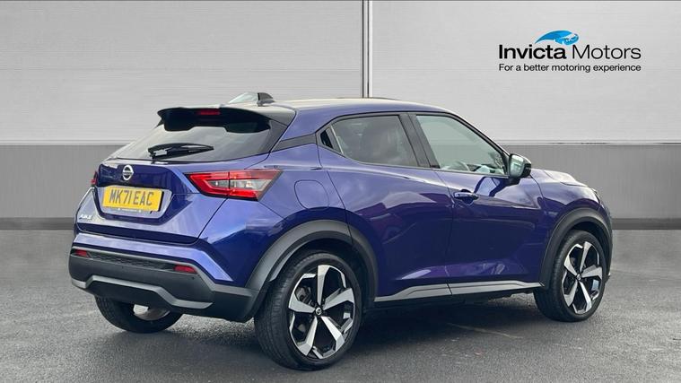 Features include Keyless Entry+Go, Lane Assist, LED Lights wDusk+Rain Sensors, Climate Control, Front+Rear Sensors and even Power Folding Mirrors. Bold, efficient, and packed with technology, this Nissan Juke Tekna stands out as a compact SUV with real personality. Finished in eye-catching Blue Metallic, it combines sharp, modern styling with sporty details and a confident road presence. Powered by the 1.0 DIG-T petrol engine, it delivers smooth, responsive performance that's just as comfortable in the city as it is on the open road. Inside, the Tekna trim offers a premium experience with features such as touchscreen infotainment, Apple CarPlay/Android Auto, Bose Personal Plus audio, satellite navigation, 360 Around View Monitor, heated seats, and advanced driver assistance systems. With clever design, a practical boot, and plenty of comfort, the Juke Tekna is perfect for those wanting style and substance in one smart package. Message today to arrange a viewing.