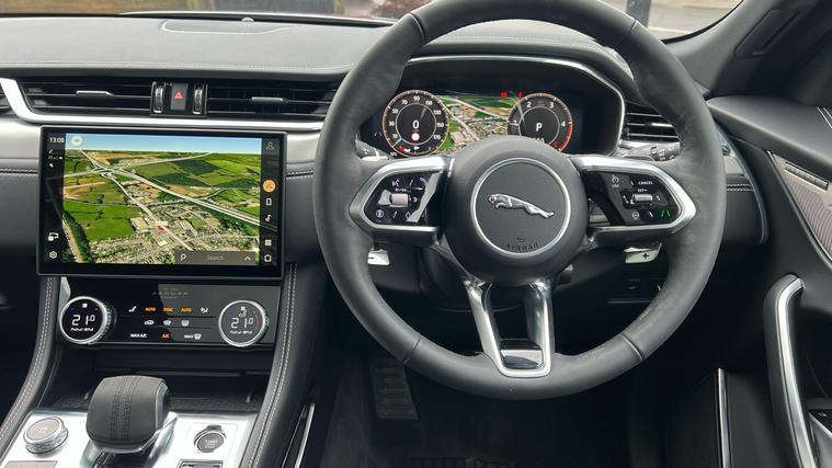 Lovely low mileage and late plate F Pace, offered in the well appointed R Dynamic SE Black trim level. *9.9 Representative APR available. Finished in Eiger Grey Metallic with Ebony Hide Leather Seats. Features include 20 inch Black Alloy Wheels, Exterior Black Pack, Privacy Glass, Fixed Glass Panoramic Sunroof, Privacy Glass, Adaptive Cruise Control, All Wheel Drive, Apple Carplay, Auto High Beam Assist, Blind Spot Monitor, DAB Radio, Directional Indicators, Electric Front Seats with Lumbar Support, Heated Steering Wheel, Heated Windscreen, Heated Front Seats, LED Premium Headlamps, Keyless Entyry, Meridian Sound System, 11.4 inch Infotainment System, Powered Tailgate, Voice Activated Controls, Rear Camera. Call now for the full details and to check availability. *9.9 Representative APR available.