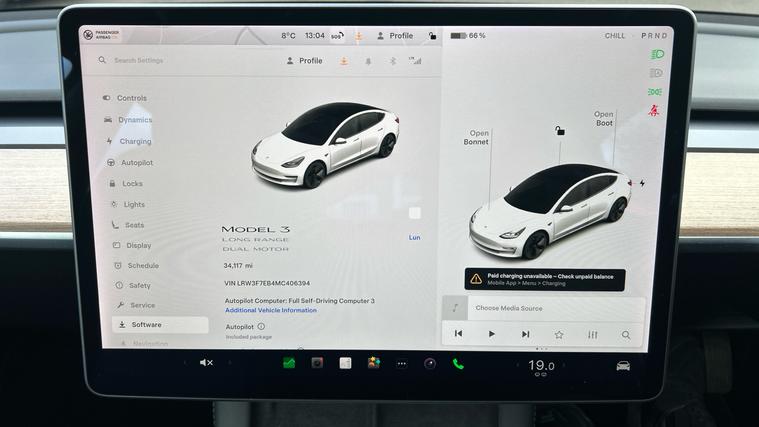 The 2021 Model 3 Long Range AWD combines cutting-edge tech, comfort and practical electric driving. A refined and compelling choice for anyone moving into EV motoring. The 2021 Tesla Model 3 Long Range AWD delivers a refined and high-tech electric driving experience. It features a large, centrally-mounted 15 touchscreen that controls navigation, media, climate and vehicle settings with intuitive over-the-air software updates; heated front and rear seats; dual-zone climate control; and wireless phone charging for modern convenience. The cabin benefits from a panoramic glass roof that adds light and space, while premium audio brings an immersive listening experience. On the outside, sleek aerodynamic styling, LED headlights and power-folding heated mirrors give it a distinctive look, and safety/convenience features such as Autopilot driver assistance, front + rear parking sensors and a reversing camera help make every journey easier. With all-wheel drive traction and impressive electric range, this Model 3 blends everyday usability with premium EV performance.