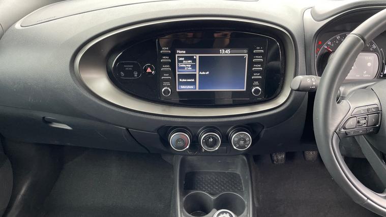 A lovely low mileage Toyota Aygo X finished in the metallic Eclipse Black. Unleash excitement with the Toyota Aygo X 1.0 VVT-i Pure 5dr. Designed for urban adventures, enjoy effortless drives with cruise control and stay cool with air conditioning. Experience seamless connectivity with Apple CarPlay and Android Auto, keeping you in tune as you navigate through life's journey. Glide with confidence, powered by bold 17-inch alloys and precision from the reverse camera. The Aygo X is crafted for those who crave style and practicality in one dynamic package. Embrace a compact car that maximizes every corner and enhances every city drive. Discover the perfect blend of fun and functionality with Toyota Aygo X.