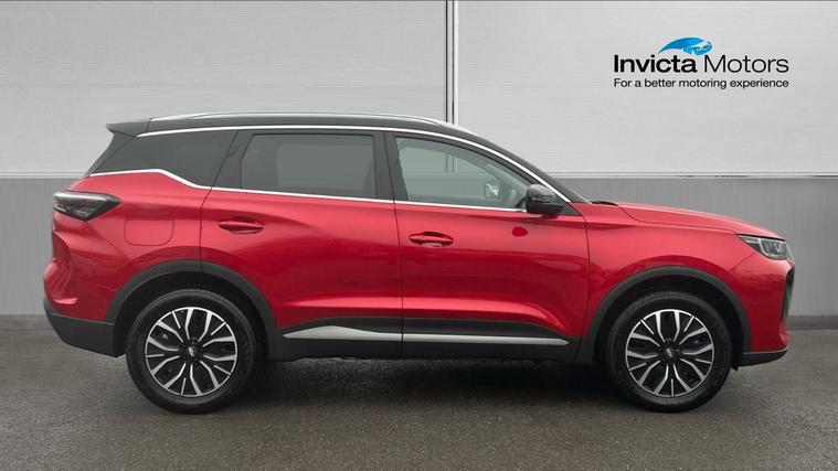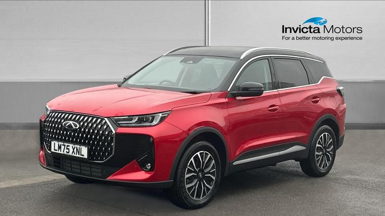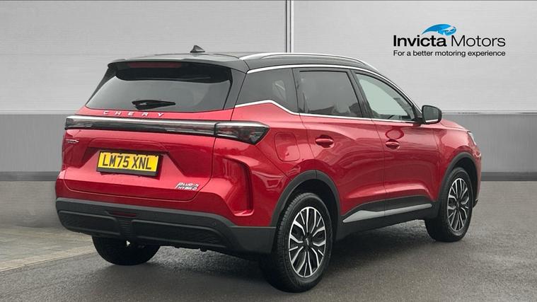A well-spec Tiggo 7 PHEV with smart tech, comfort features and efficient driving. A great family SUV that balances everyday usability with modern hybrid capability. The 2025 Chery Tiggo 7 Estate 1.5T PHEV Aspire (DHT) brings efficient plug-in hybrid driving together with modern comfort and technology in a versatile SUV package. Inside, you'll enjoy a large touchscreen infotainment system with built-in navigation, Apple CarPlay + Android Auto, premium audio and wireless phone charging. The cabin features heated front seats, dual-zone automatic climate control, ambient lighting and multiple USB-C ports for convenience. On the outside, the Aspire trim includes LED headlights, stylish alloy wheels, body-colour door mirrors with indicators, roof rails and privacy-tinted rear glass, giving it a contemporary look. Practical safety and driver-assist features include keyless entry + start, adaptive cruise control, blind-spot monitoring, lane-keep assist, and front + rear parking sensors with a reversing camera. The plug-in hybrid drivetrain adds electric-only driving capability for everyday commutes and efficient petrol backing for longer journeys, making it a flexible and tech-rich SUV choice.