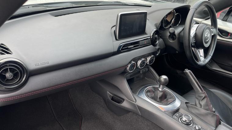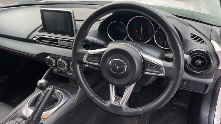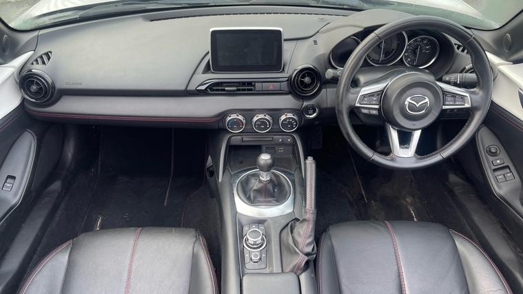 Our Mazda MX-5 with less than 20, 000 miles features Satellite Navigation, Rear Parking Sensors, Cruise Control with Speed Limiter and even Heated Front Seats. Unleash the thrill of driving with the Mazda MX-5 1.5 Icon 2dr. A masterpiece of engineering and design, featuring a 7-inch Color Touch Screen Display with Aha and Stitcher app integration, bringing your drive to life. Connect effortlessly with Integrated Bluetooth and revel in seamless audio transitions. Navigate with confidence using the Satellite Navigation System, while rear parking sensors provide ultimate peace of mind. Enjoy open skies with the manually operated premium cloth soft top, complete with heated rear window. Indulge in luxury with a striking black full leather interior. Discover true freedom behind the wheel. Mazda MX-5, where the road becomes your playground.