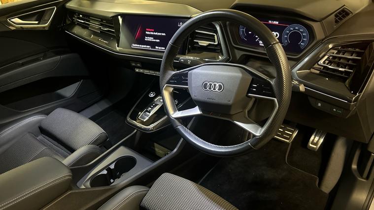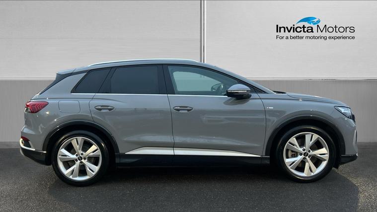 Lovely spec, VAT Qualifying all the optional extras that makes it great. Discover the Audi Q4 e-Tron 150kW 40 82kWh S Line 5dr Auto seamless blend of electrifying innovation and exceptional comfort. Elevate your drive with a vehicle that has had only one owner since new, ensuring pristine condition. With Optional extras, Comfort + Sound pack, Reversing camera, Audi Parking System Plus, Adaptive cruise w/ limiter, SONOS premium sound system, Assistance pack plus, Technology Pack Light, Augmented Reality head-up display, Audi Virtual Cockpit Plus, MMI Pro, 12-volt + 2xUSB-C in rear, Park assist plus, finished in Pebble grey, Interior Black, VAT Qualifying .