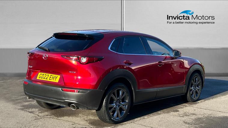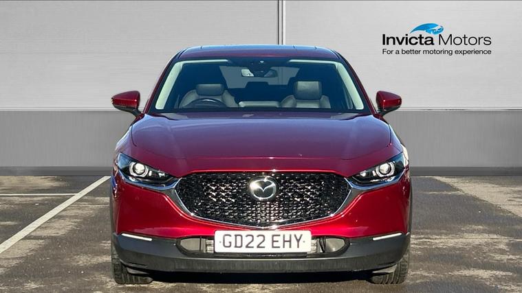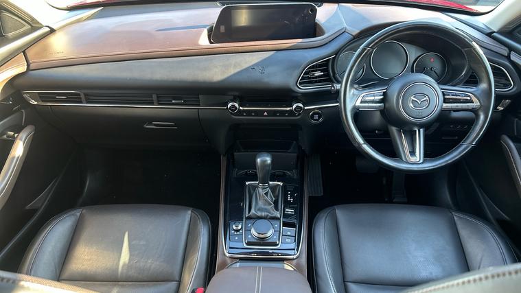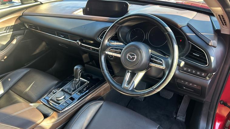 The 2022 CX-30 GT Sport Tech combines upscale comfort, advanced tech and everyday usability in a stylish SUV. A refined choice for discerning drivers. The 2022 Mazda CX-30 2.0 e-Skyactiv-X MHEV GT Sport Tech Auto delivers a premium driving experience with a strong blend of comfort, technology and refined design. Inside, the cabin features high-quality materials, heated leather seats, dual-zone automatic climate control, a powered driver's seat with memory function, and ambient interior lighting. Connectivity and convenience are served by a large central touchscreen with built-in navigation, Apple CarPlay + Android Auto, wireless phone charging and a head-up display. On the outside, the GT Sport Tech trim adds stylish alloy wheels, LED headlights with adaptive front lighting, rain-sensing wipers, body-colour mirrors with integrated indicators and privacy-tinted rear glass. Practical safety and driver-assist technology include front + rear parking sensors, a reversing camera, blind-spot monitoring, lane-keep assist and adaptive cruise control. With its smooth mild-hybrid engine and refined automatic gearbox, this CX-30 offers a comfortable, well-rounded SUV experience.
