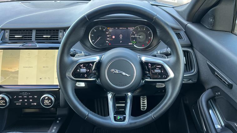 One keeper high specification HSE model, offered in a desirable colour combination. Our Jaguar E-Pace HSE is finished in Eiger Grey matched with 20-inch Style 5120 wheels in Diamond Turned finish, over Ebony Windsor leather interior, and comes equipped with some brilliant features and optional extras, including, 16-way Heated front seats with Driver Memory function, Two-zone Climate Control, Meridian Sound System, Premium LED Headlights, Keyless Entry, Adaptive Cruise Control, Lane Keep Assist, Blind Spot Assist, Front and Rear Parking Aids, Rear Camera, Apple CarPlay and Android Auto, DAB Radio, Wireless Device Charging, and much more. Call today for more information.