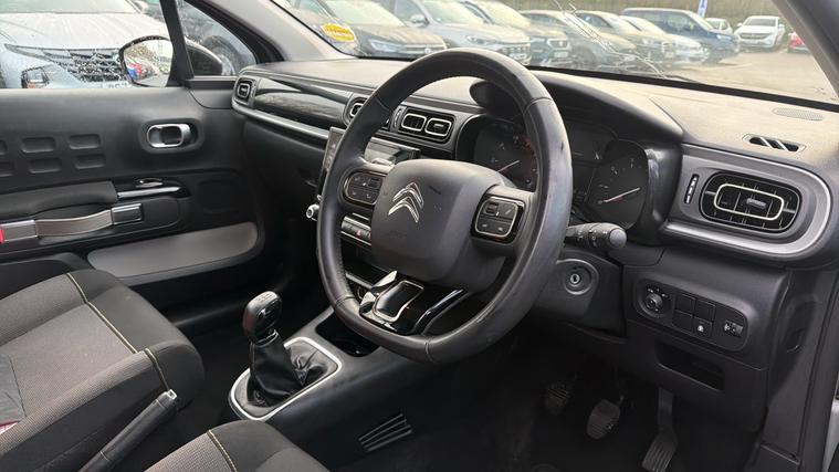 Features Include Apple CarPlay And Android Auto, TouchScreen Infotainment With Navigation, Rear Parking Sensors And Camera And LED Daytrime Running Lights. Stylish, comfortable, and packed with features, this 2021 Citron C3 1.2 PureTech Shine finished in modern Cumulus Grey is the perfect hatchback for drivers looking for character, efficiency, and everyday practicality. Powered by Citron's award-winning 1.2-litre PureTech petrol engine, the C3 delivers smooth performance with excellent fuel economy, making it ideal for city driving and longer journeys alike. Its light steering and comfortable ride ensure a relaxed and enjoyable driving experience. Inside, the top-spec Shine trim offers a high level of equipment, including a touchscreen infotainment system with satellite navigation, Apple CarPlay + Android Auto, Bluetooth connectivity, and DAB radio. The cabin is bright and comfortable, with supportive seating, automatic climate control, and thoughtful storage throughout.
